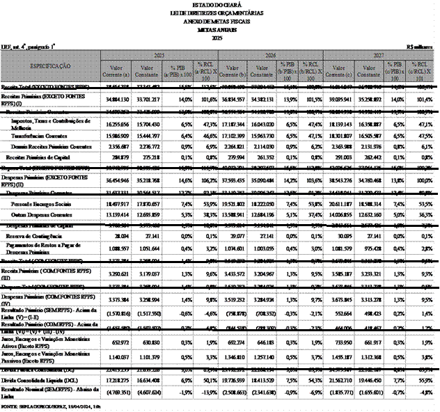 Desse modo, o Estado do Ceará estimou parcela do crescimento do ICMS em 2025 no valor aproximado de R$ 322,8 milhões de reais para fazer face a novas despesas de caráter continuado.