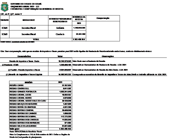 LEI N.º 17.364, DE 23 DE DEZEMBRO DE 2020, QUE ESTIMA A RECEITA E FIXA A