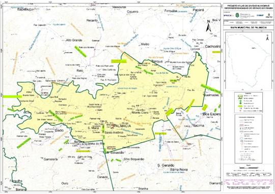 o município de PALMÁCIA - Ao norte. Começa no ponto de
